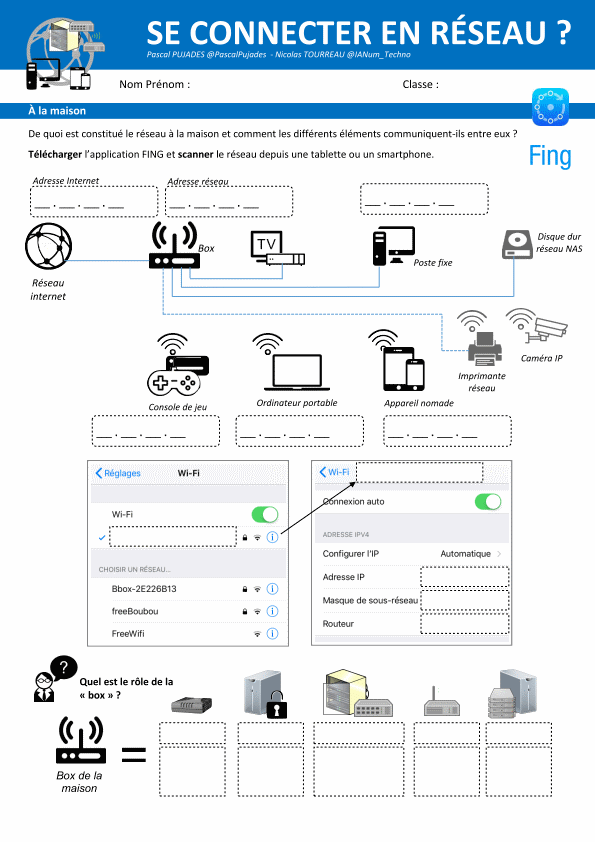 - Indiquer sur la feuille les adresses IP des appareils connectés sur le même réseau à l'aide de l'application Fing